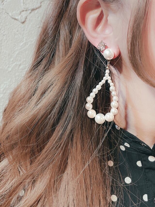 ふとした仕草で揺れるパールが柔らかな輝きを放つ、上品なデザインが魅力の一品です?